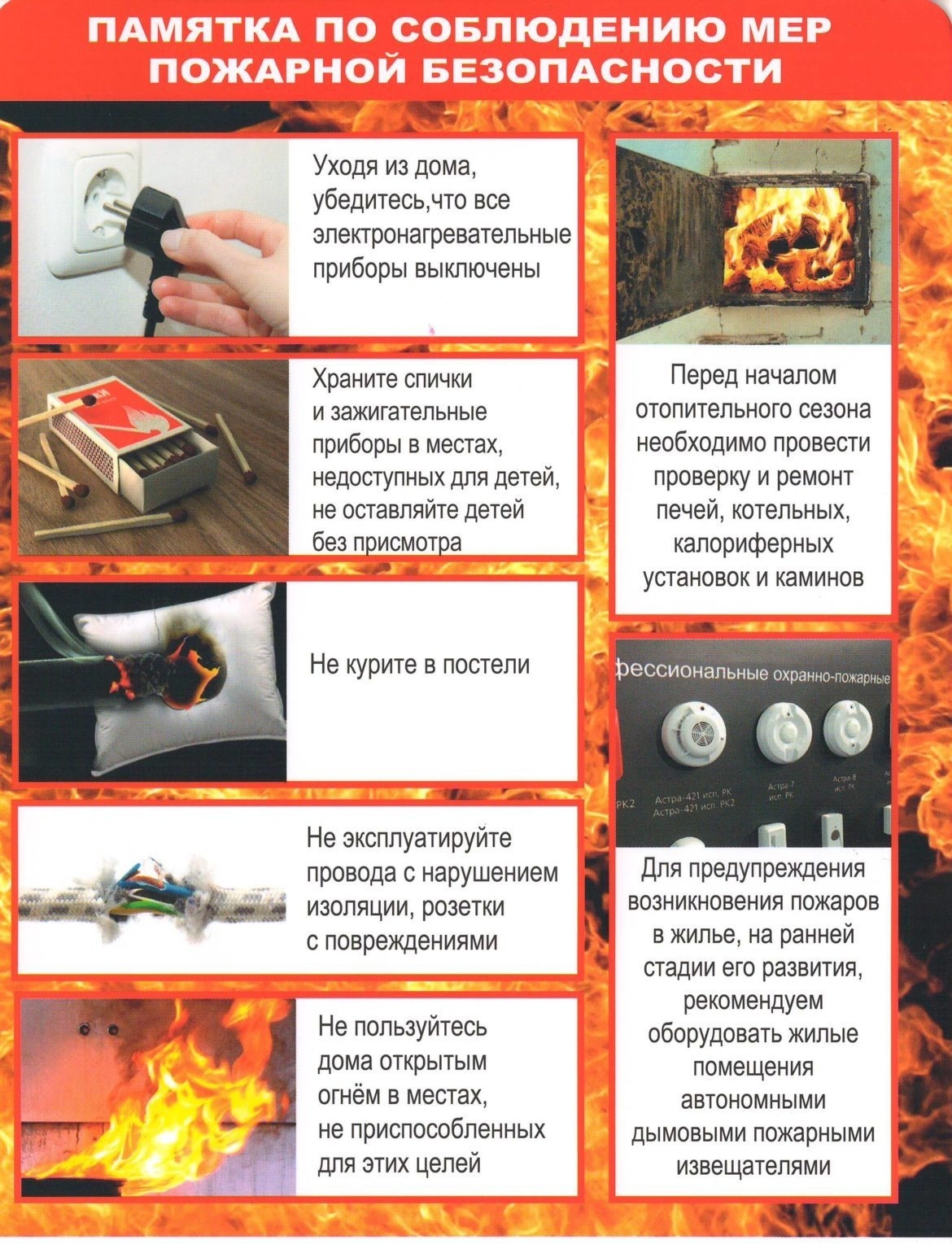 Памятка по соблюдению мер пожарной безопасности