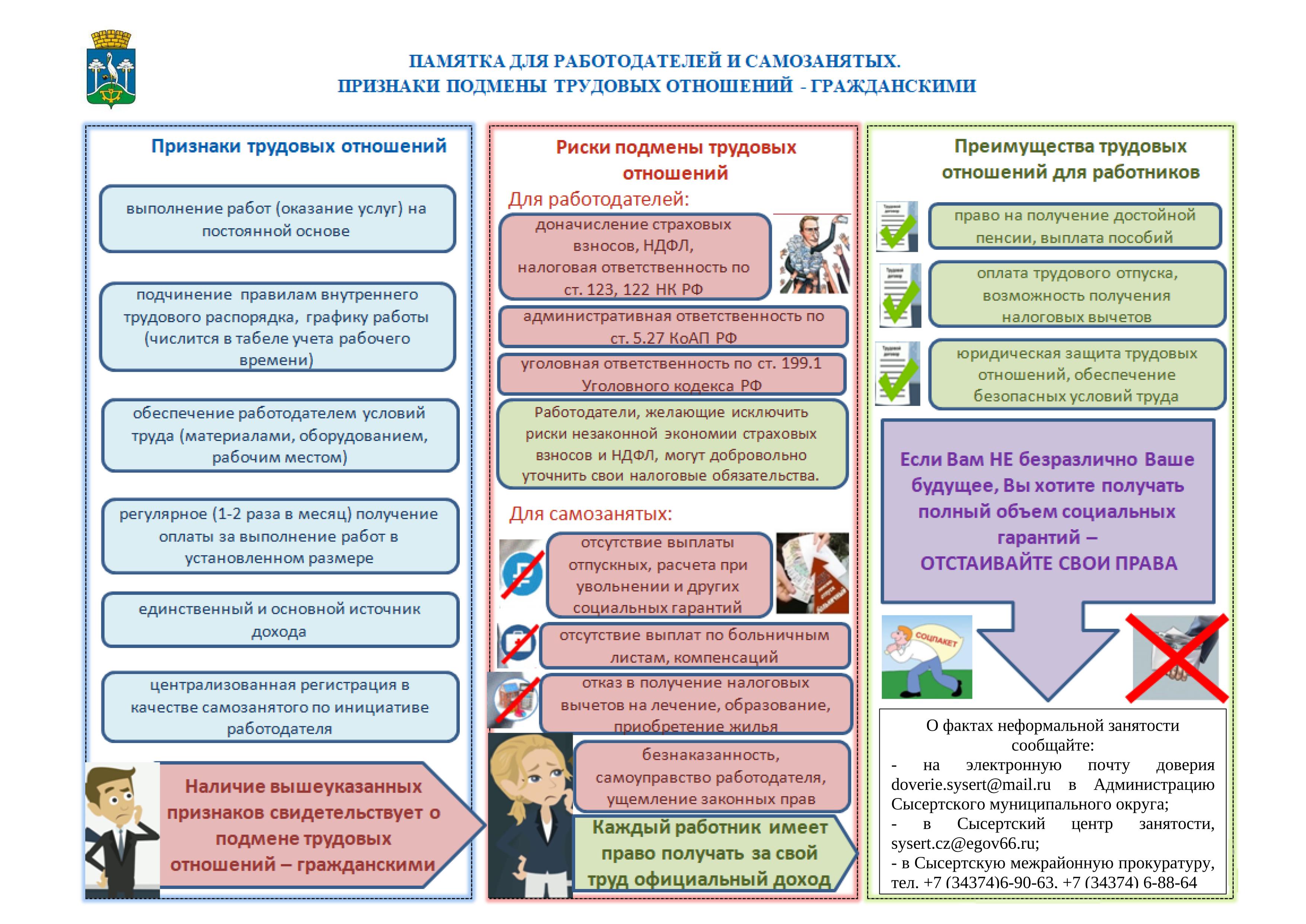Памятка для работодателей и самозанятых. Признаки подмены трудовых отношений - гражданскими. 7 ноября 2025 г. Актуальные темы