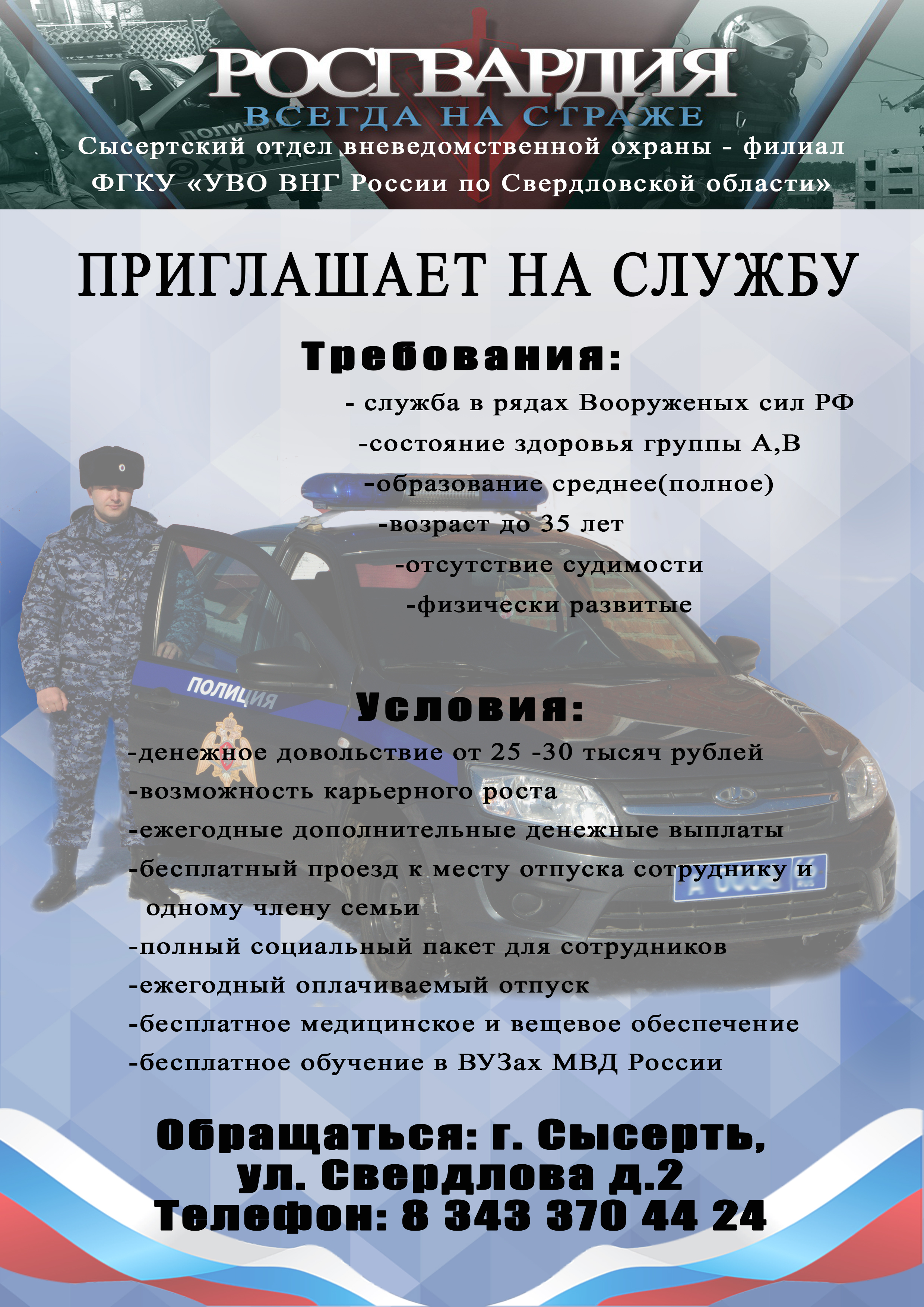 Сысертский отдел вневедомственной охраны приглашает на службу граждан отслуживших в рядах Вооружённых сил РФ. 12 октября 2020 г. Актуальные темы
