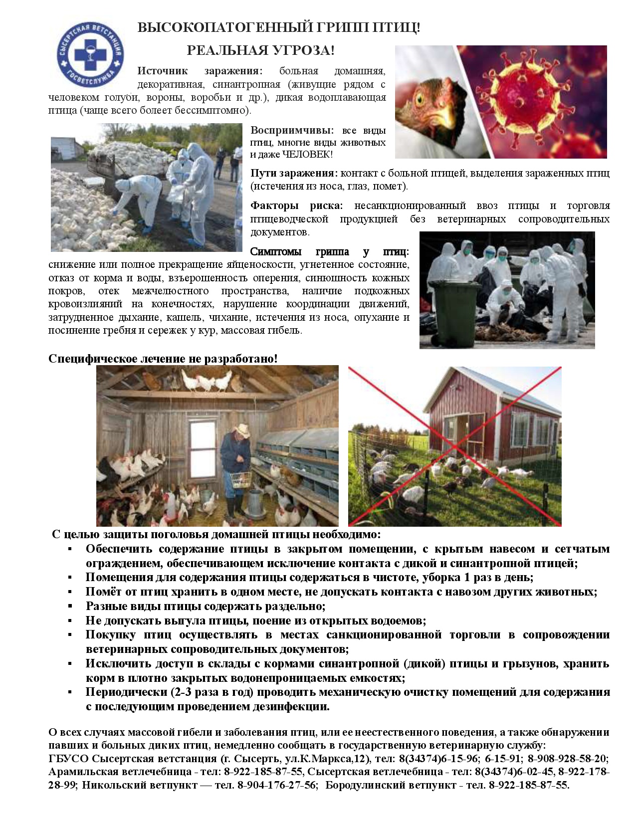 Памятка для населения- Высокопатогенный грипп птиц ! Реальная угроза!