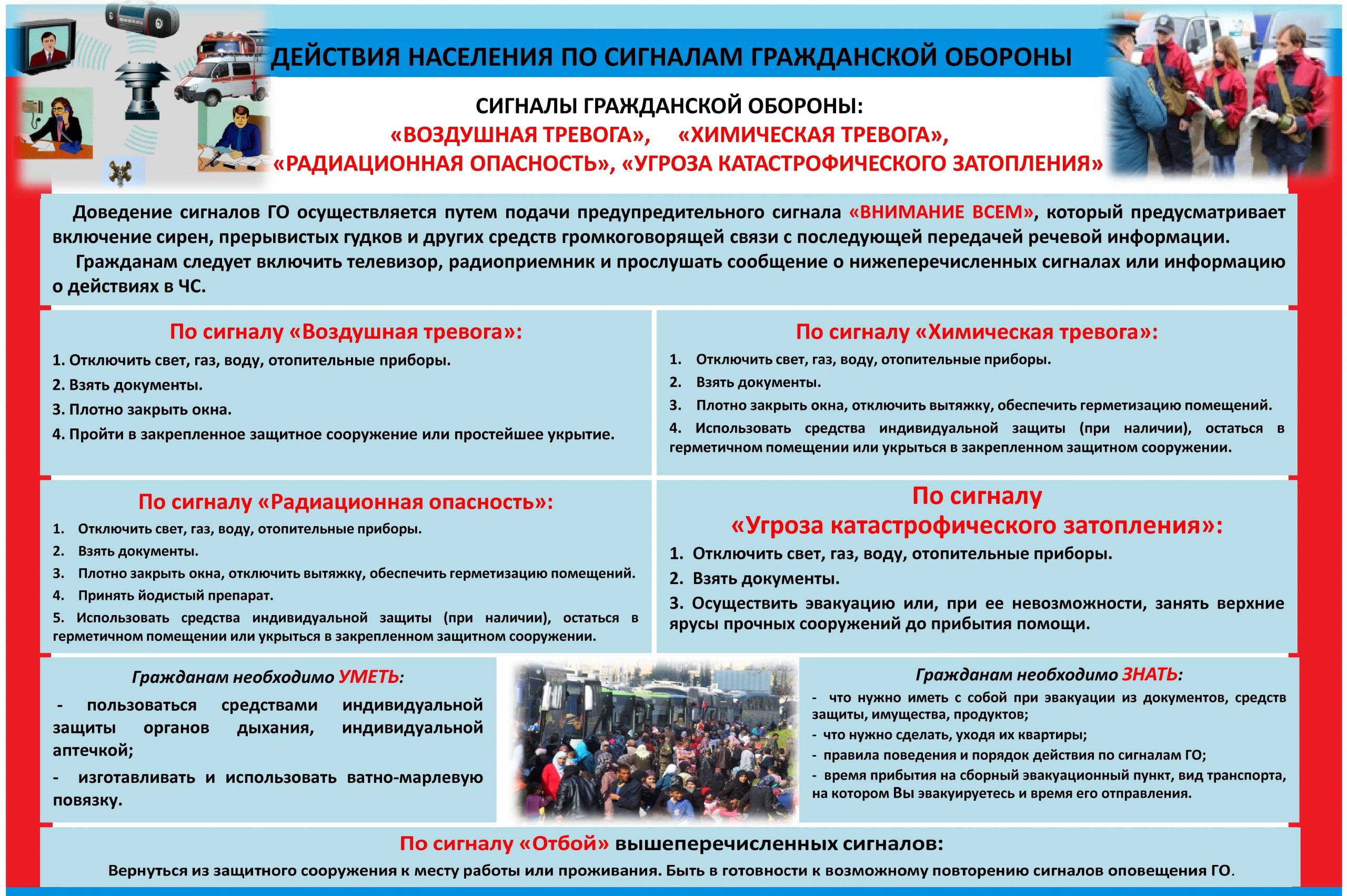 Действия населения по сигналам гражданской обороны!!!
