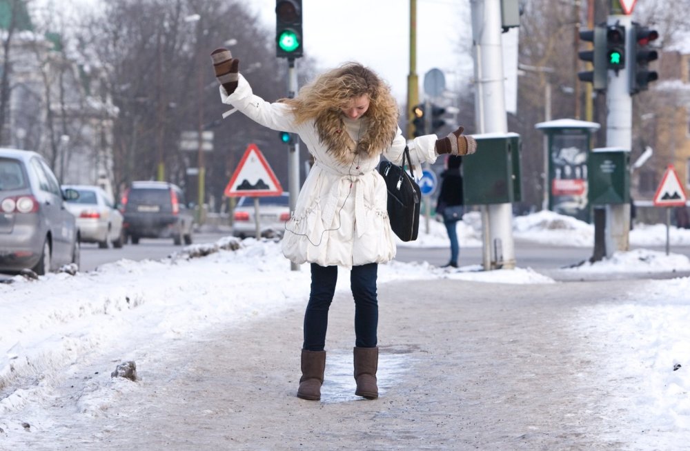 Передвигайтесь осторожно, не торопясь, наступая на всю подошву. При этом ноги должны быть слегка расслаблены, руки свободны. Пожилым людям рекомендуется использовать трость с резиновым наконечником или специальную палку с заостренными шипами. Если Вы поскользнулись, присядьте, чтобы снизить высоту падения. В момент падения постарайтесь сгруппироваться, и, перекатившись, смягчить удар о землю.