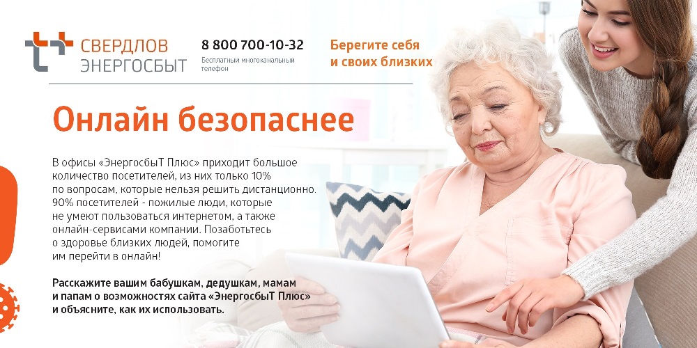 В офисы «ЭнергосбыТ Плюс» приходит большое количество посетителей, из них только 10% по вопросам, которые нельзя решить дистанционно. 90% посетителей - пожилые люди, которые не умеют пользоваться интернетом, а также онлайн-сервисами компании. Позаботьтесь о здоровье близких людей, помогите им перейти в онлайн!
