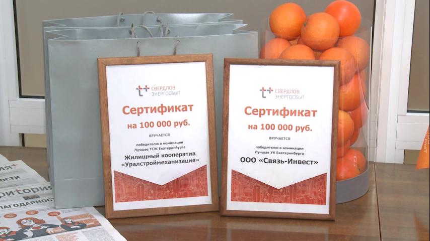Свердловский филиал «ЭнергосбыТ Плюс» подвел итоги акции «Лучшая УК/ Лучшее ТСЖ». В Екатеринбурге лучшими призваны ООО «Связь-Инвест» и Жилищный кооператив «Уралстроймеханизация», в Первоуральске - ООО «Комфорт», в Нижней Туре – ТСЖ «Самоуправление», а в Лесном – ООО УК «Фаворит».