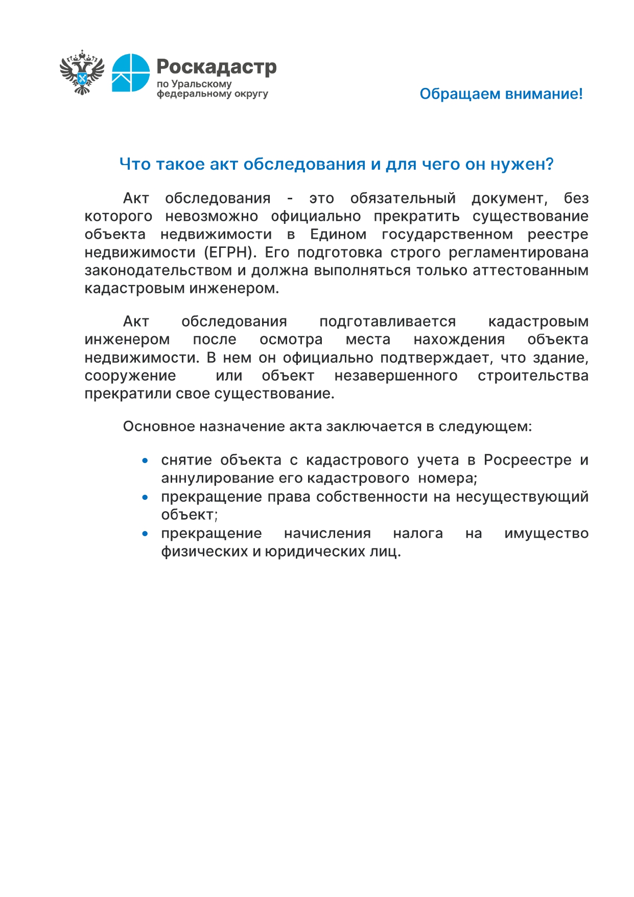 Акт обследования 27 ноября 2025 г. Новости от филиала ППК "Роскадастр" по Уральскому федеральному округу