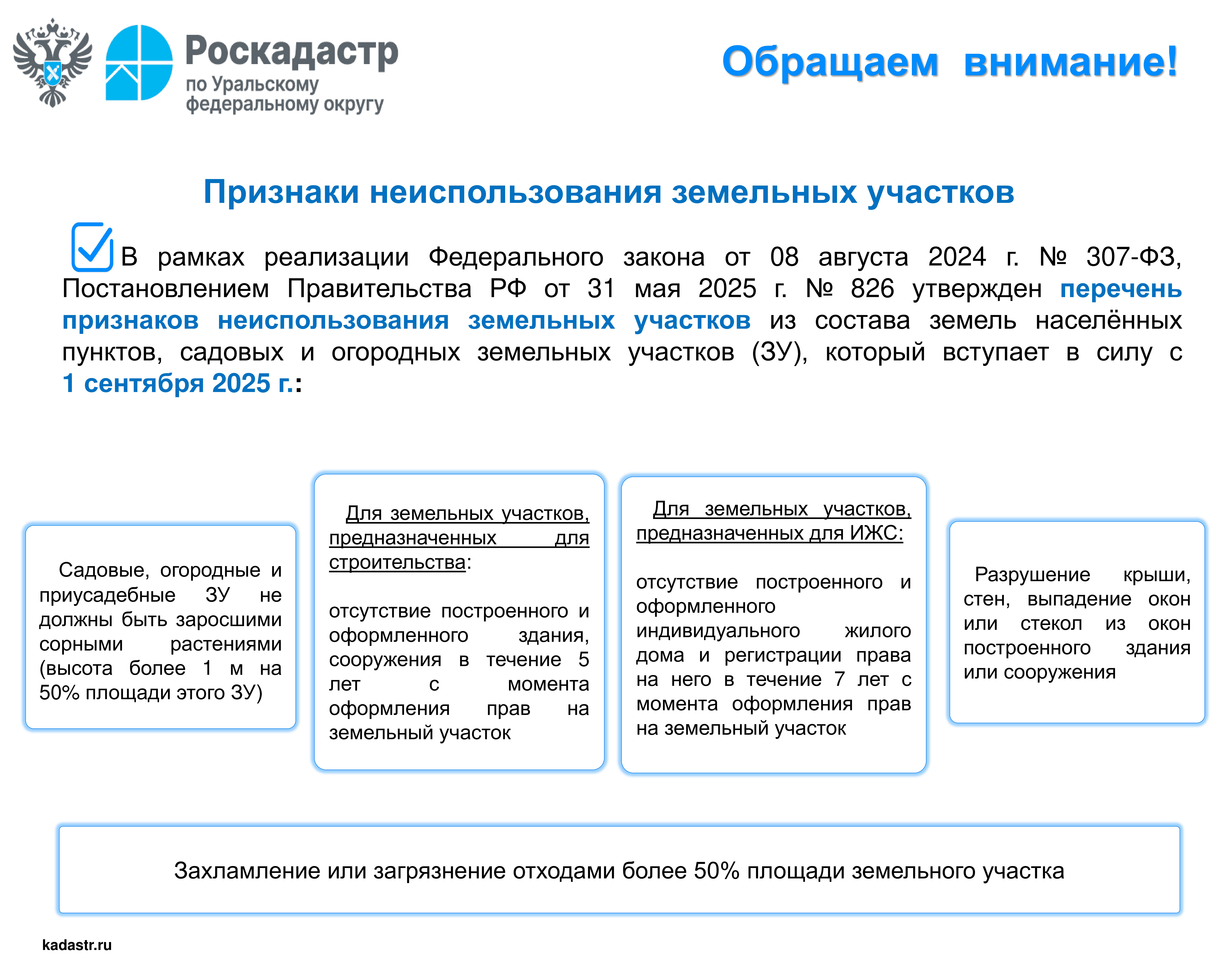 Обращаем внимание! Признаки неиспользования земельного участка 23 сентября 2025 г. Новости от филиала ППК "Роскадастр" по Уральскому федеральному округу