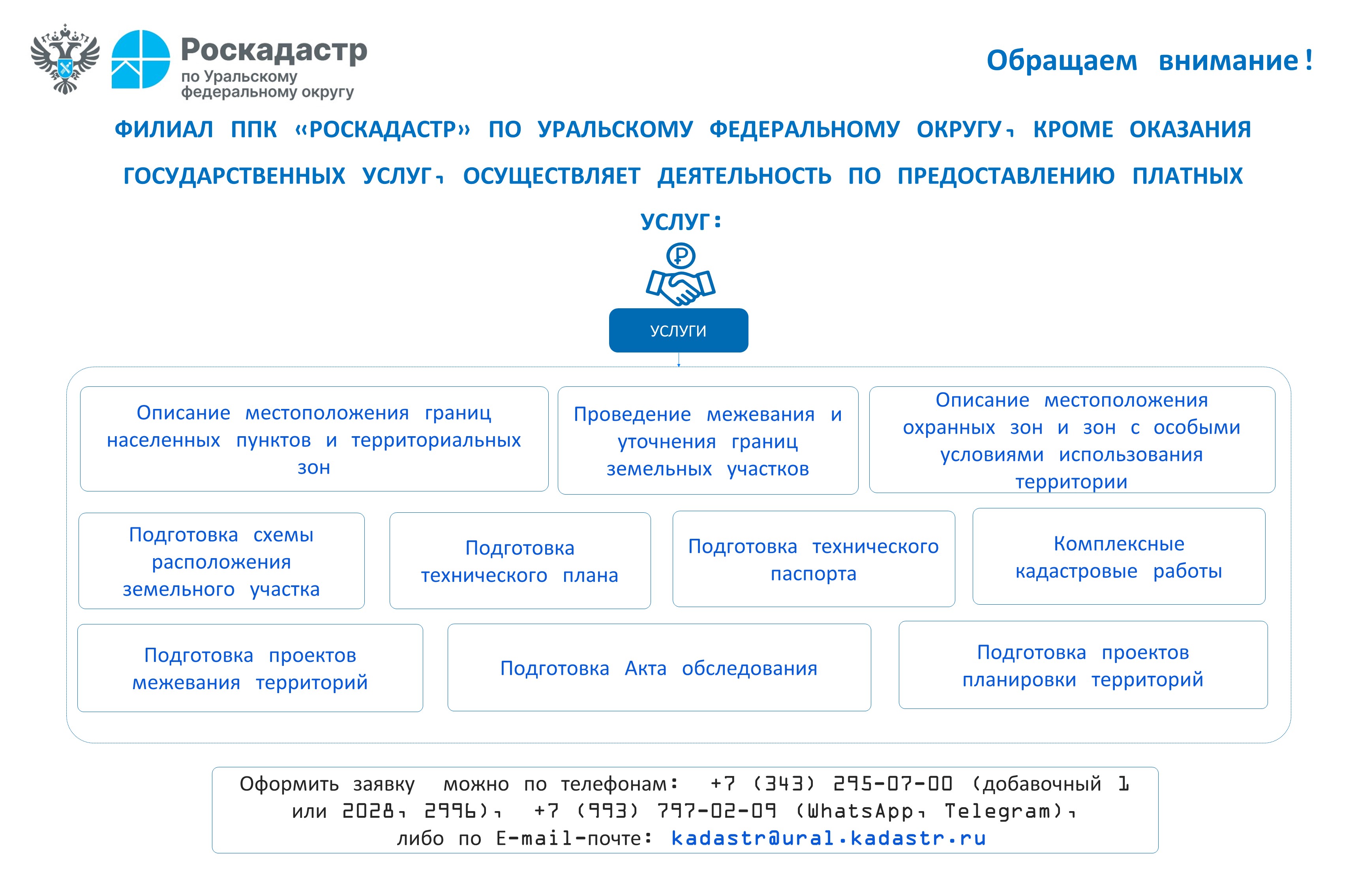 Обращаем внимание! Филиал ППК «Роскадастр» по Уральскому федеральному округу, кроме оказания государственных услуг, осуществляет деятельность по предоставлению платных услуг: 27 октября 2025 г. Новости от филиала ППК "Роскадастр" по Уральскому федеральному округу