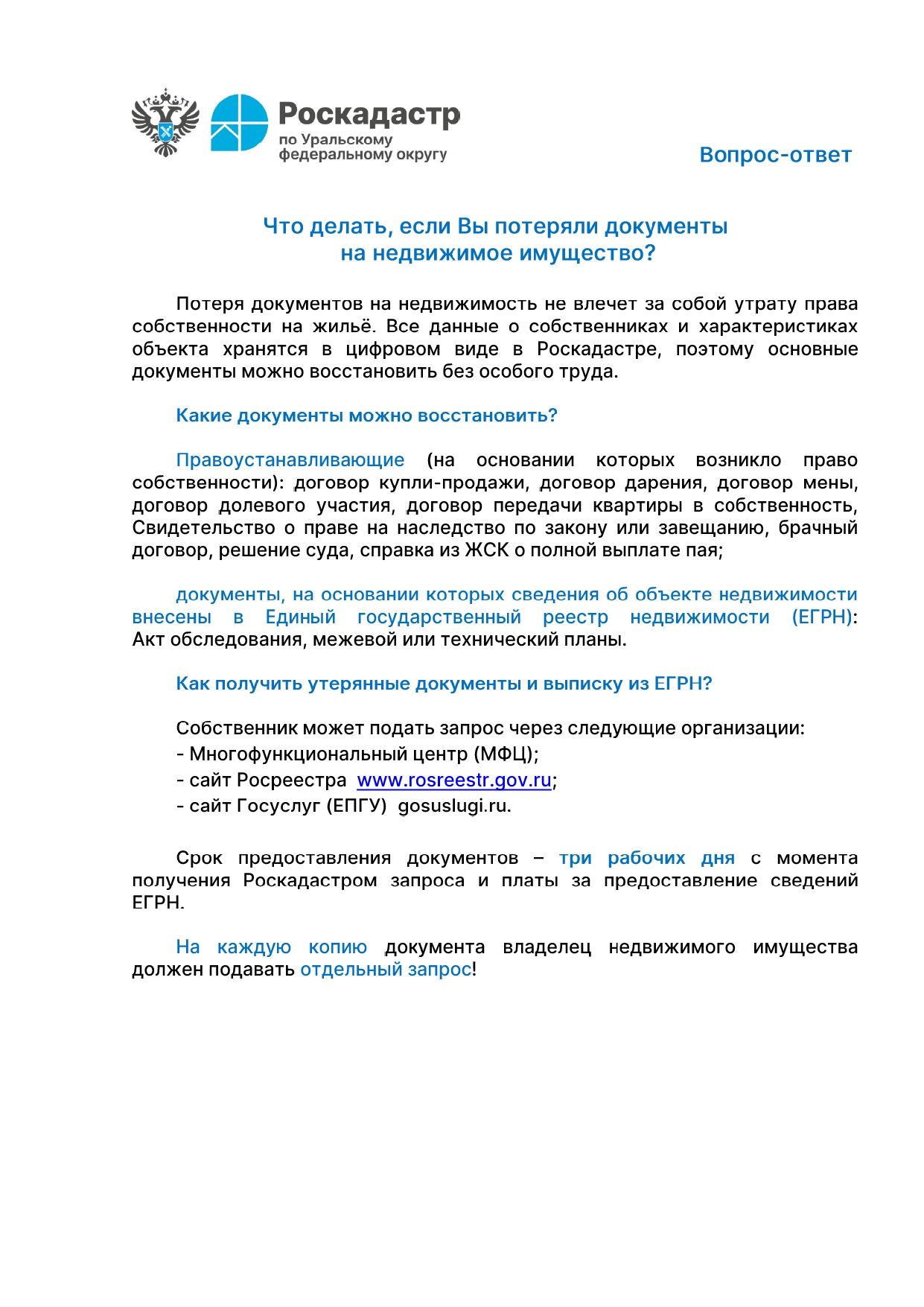 Потеря документов на недвижимость 27 ноября 2025 г. Новости от филиала ППК "Роскадастр" по Уральскому федеральному округу