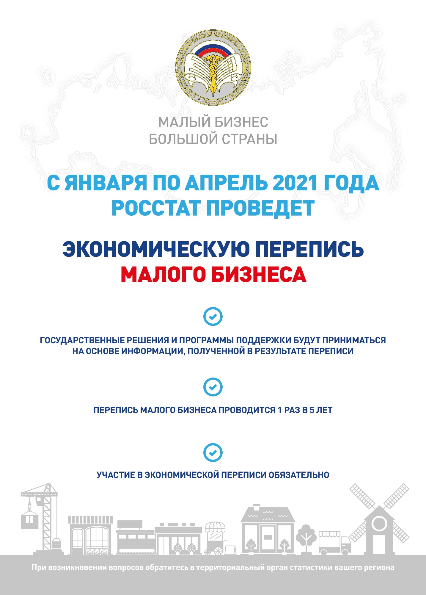 Подробная информация о проведении экономической переписи размещена на интернет- сайте Росстата по ссылке https://rosstat.gov.ru/small_business_2020.