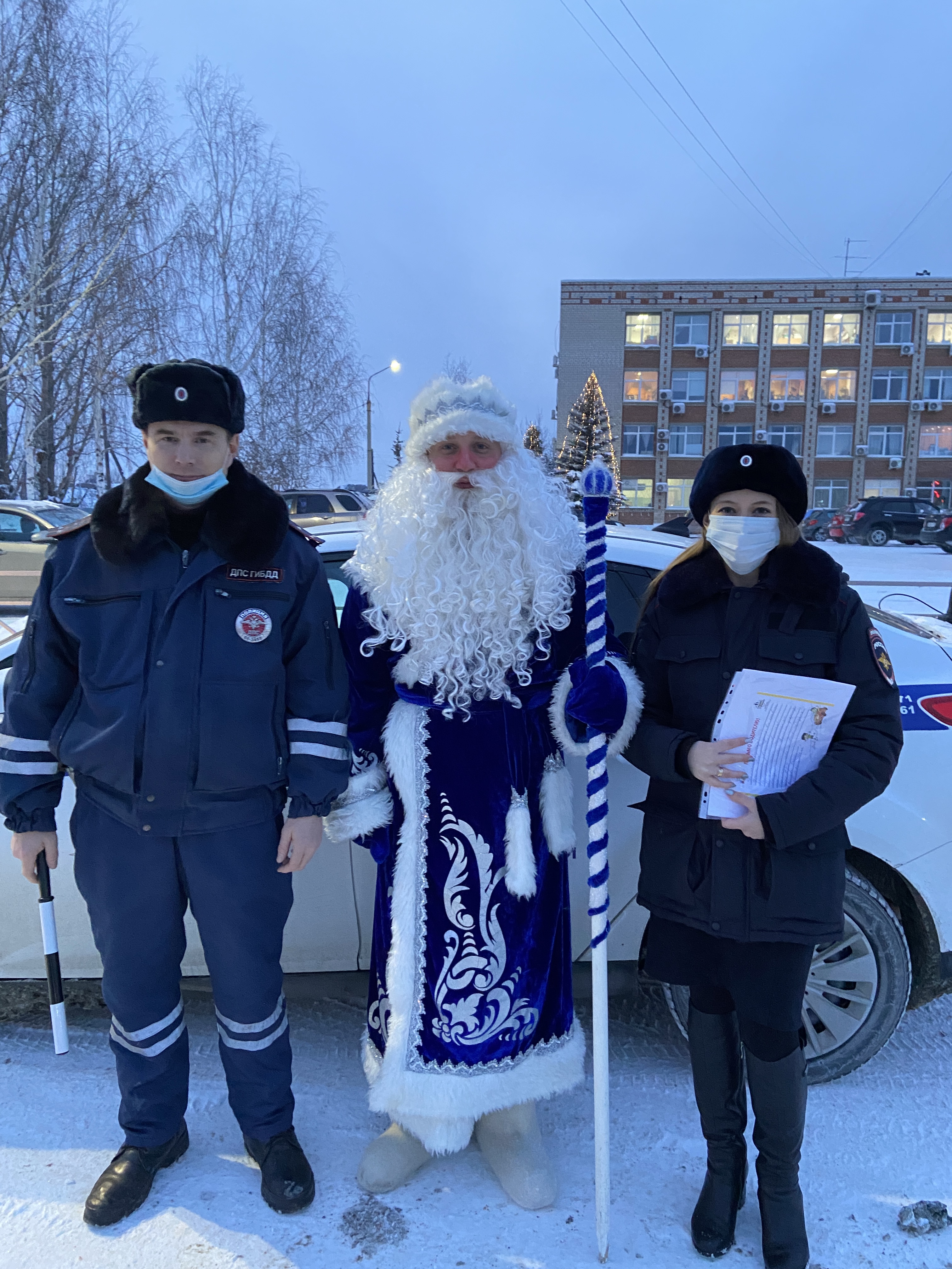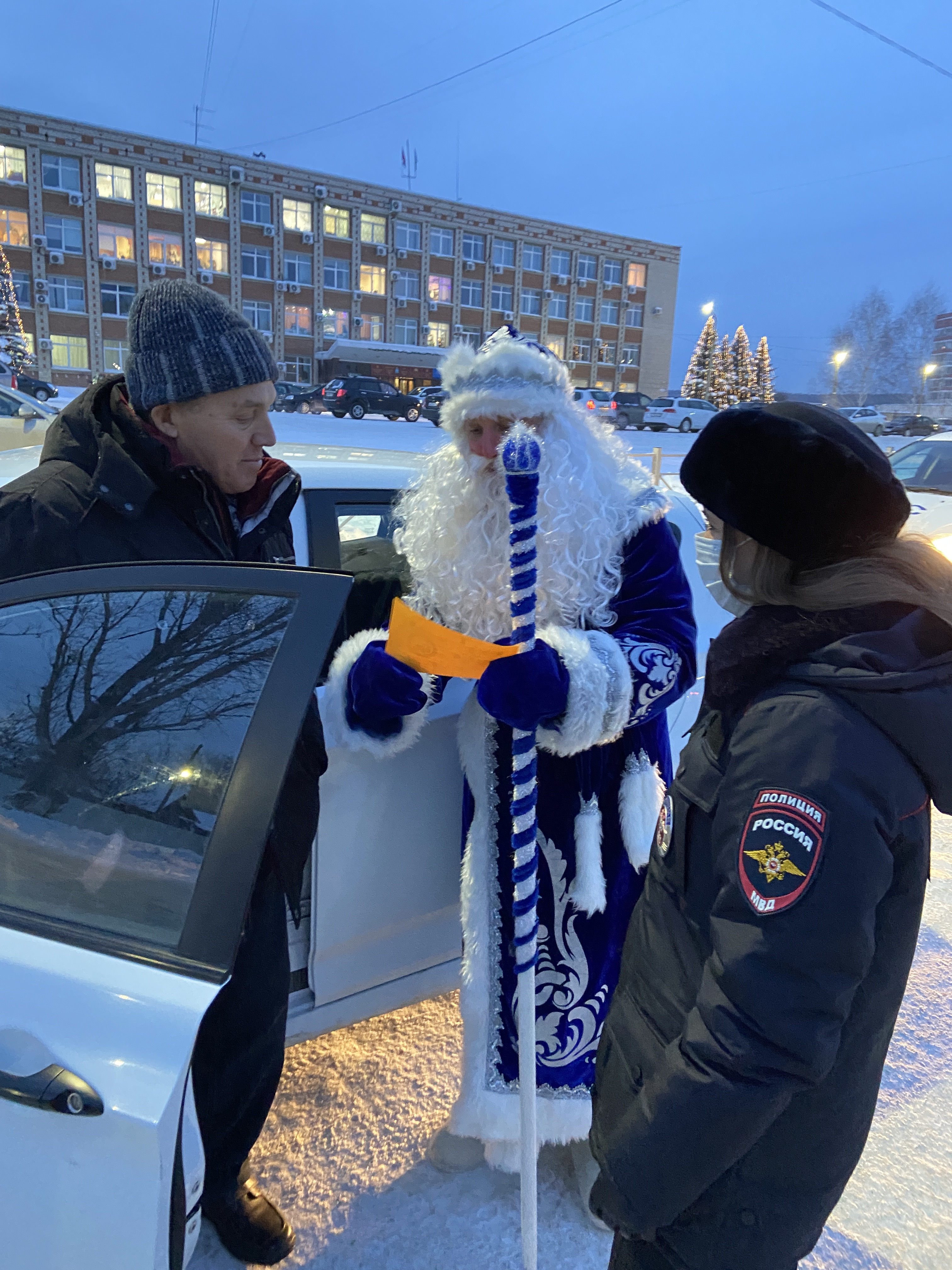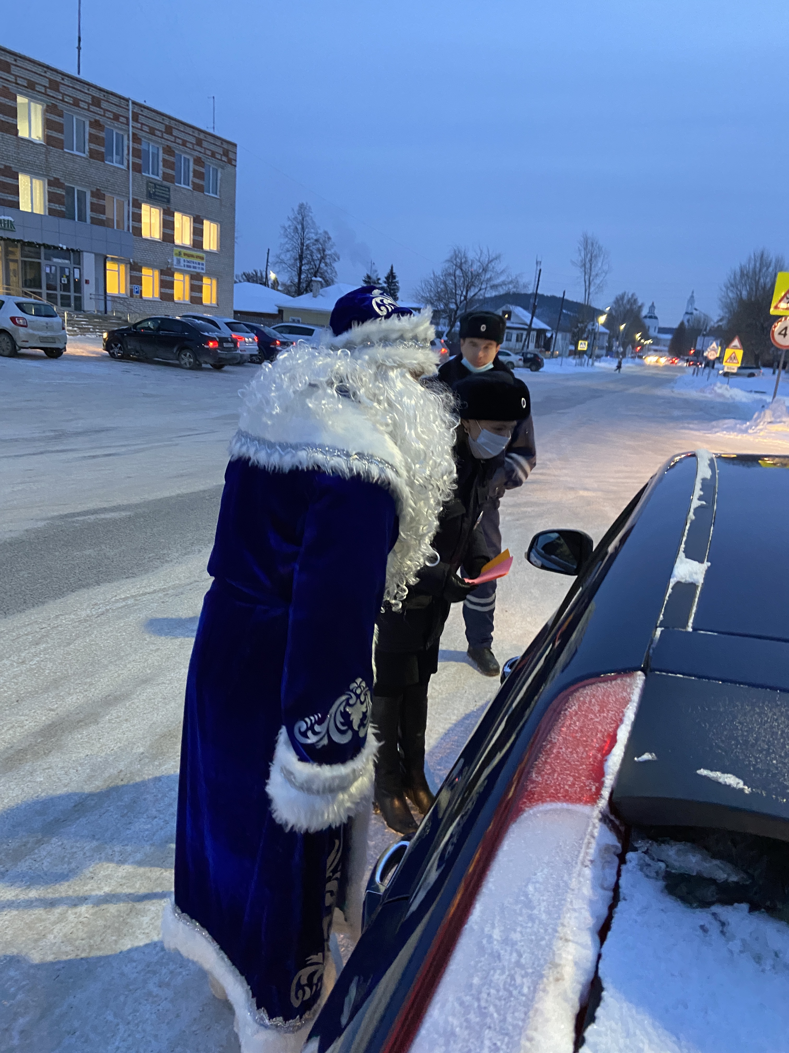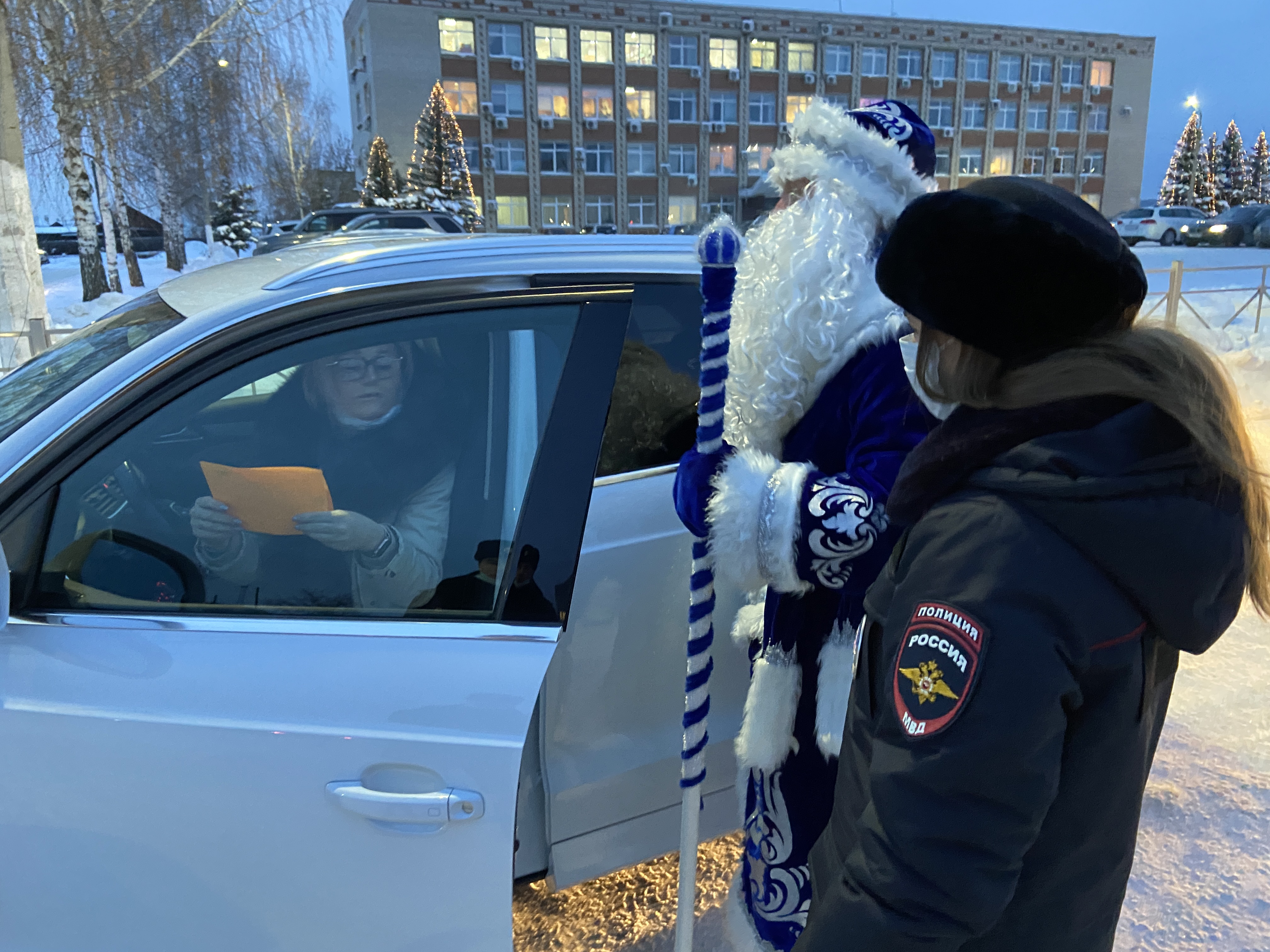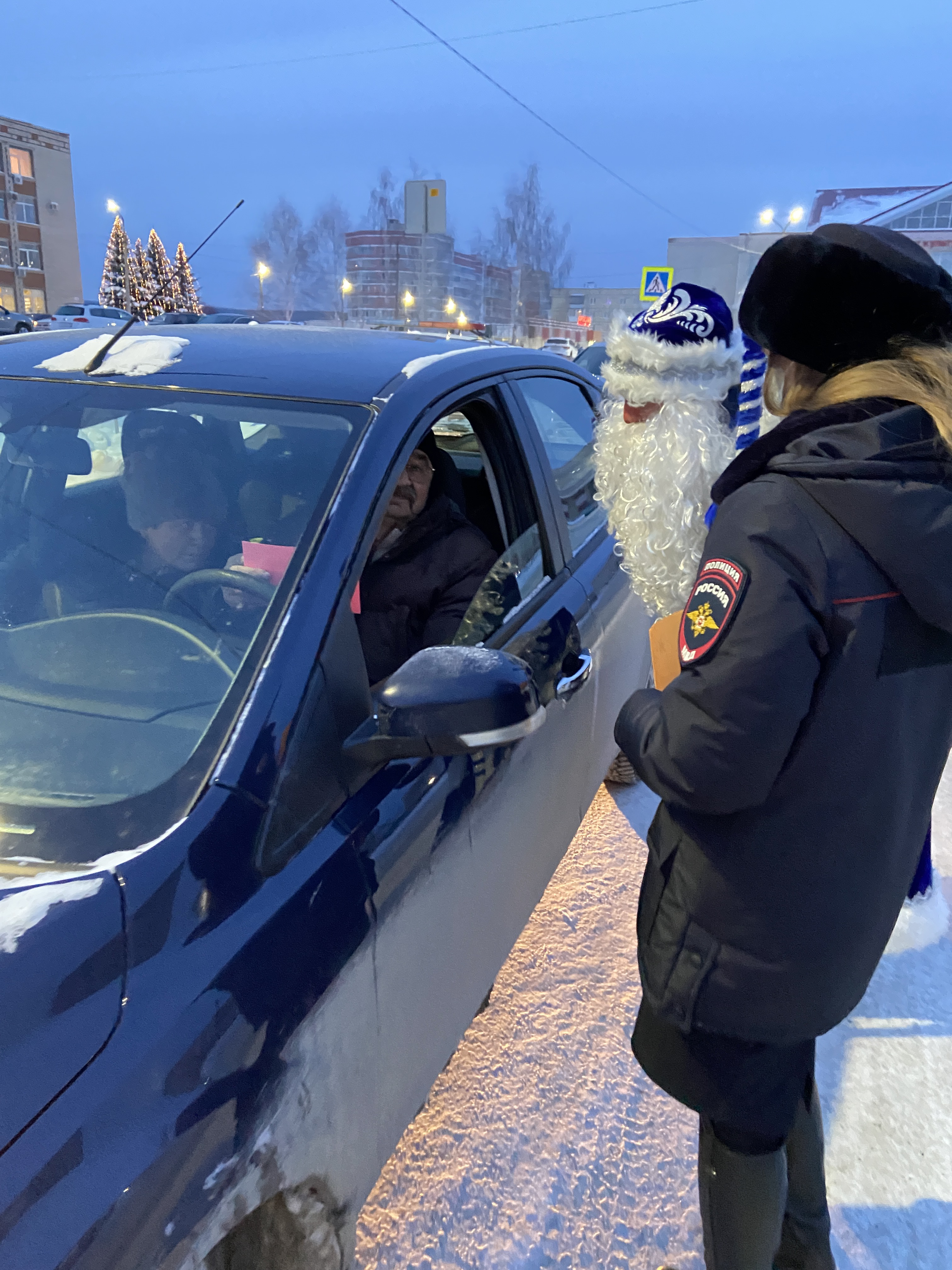 Сотрудники ГИБДД и Дед Мороз, вручая водителям детские письма, призывали водителей транспортных средств неукоснительно соблюдать правила дорожного движения и обращать внимание на то, что хотят донести до взрослых юные участники дорожного движения.