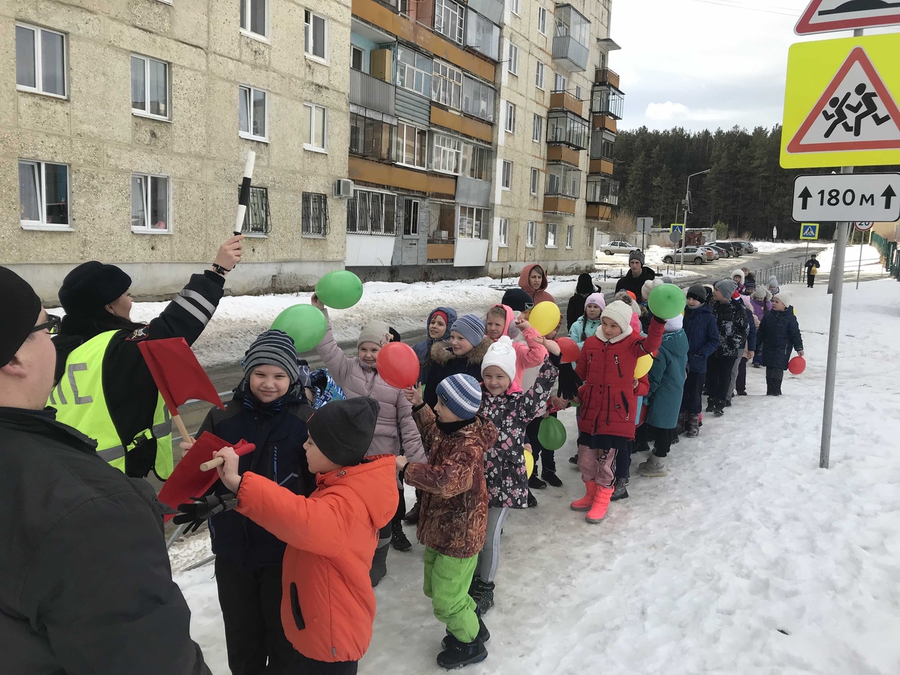 Внимание экскурсантов инспектор по пропаганде ГИБДД обратила на огромное количество автотранспорта во дворовых зонах и рассказала детям, как безопасно вести себя при этом по пути в школу или на детскую площадку. Также дети узнали, что, выйдя из подъезда своего дома, они сразу же становятся пешеходами и что во дворе своего дома необходимо быть предельно внимательными и не выбегать из-за припаркованного транспорта. Следующей остановкой «Шагающего автобуса» был нерегулируемый пешеходный переход, и там ребятам разъяснили, что переходить дорогу можно лишь после того, как убедишься, что все машины остановились. Яркая колонна из детей с разноцветными воздушными шарами привлекала внимание водителей и пешеходов.