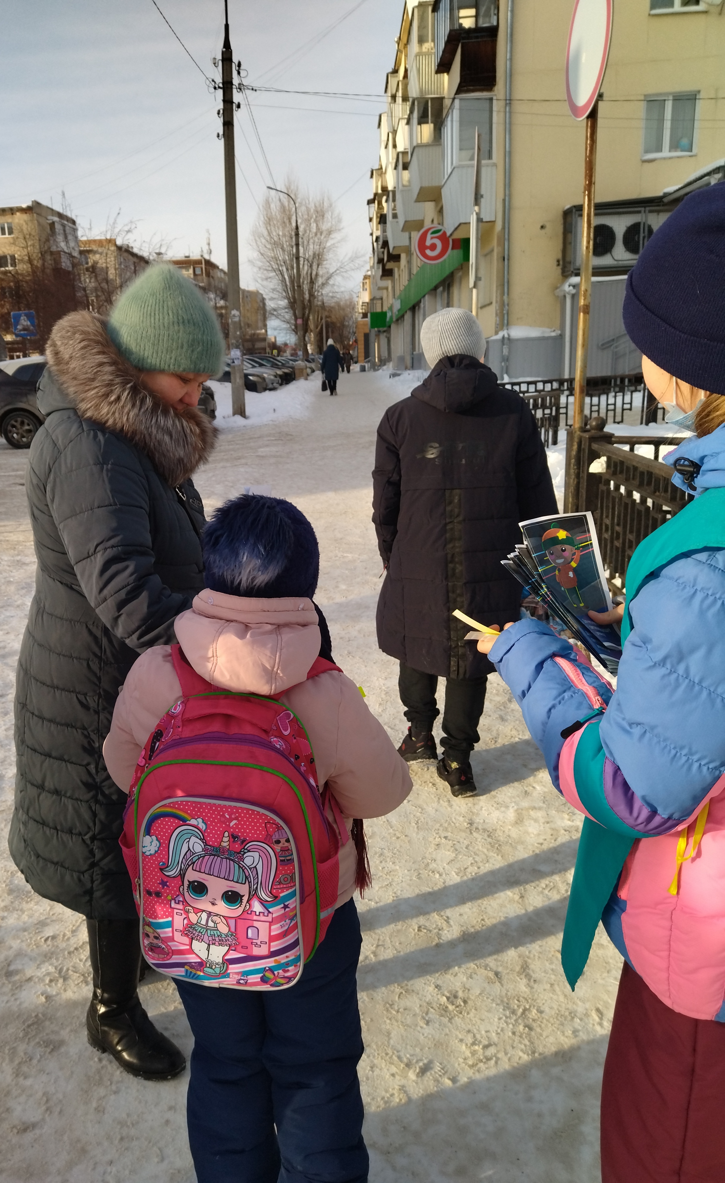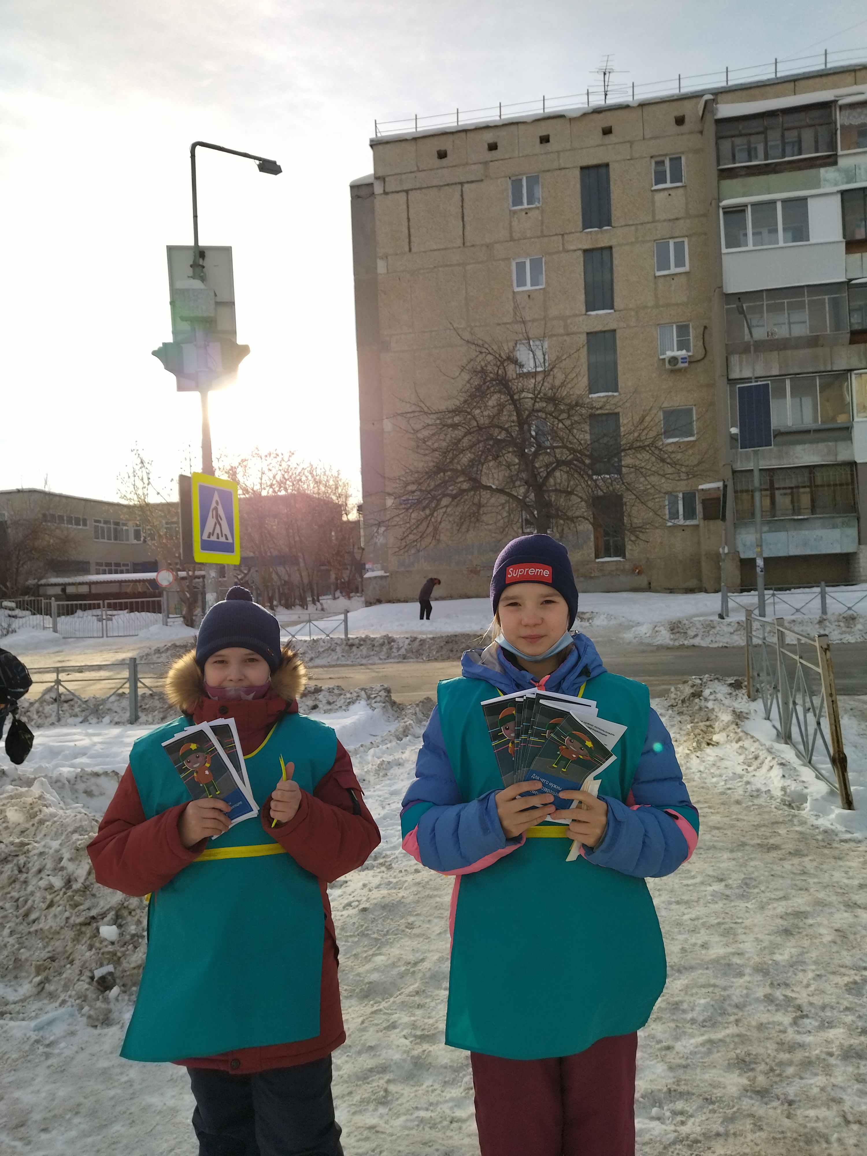 Встречая юных пешеходов, рассказывали о подстерегающих их опасностях в зимний период, одной из которых является самостоятельно сформированные снежные горки, по которым дети скатываются на проезжую часть дороги или находятся в непосредственной близости от нее.