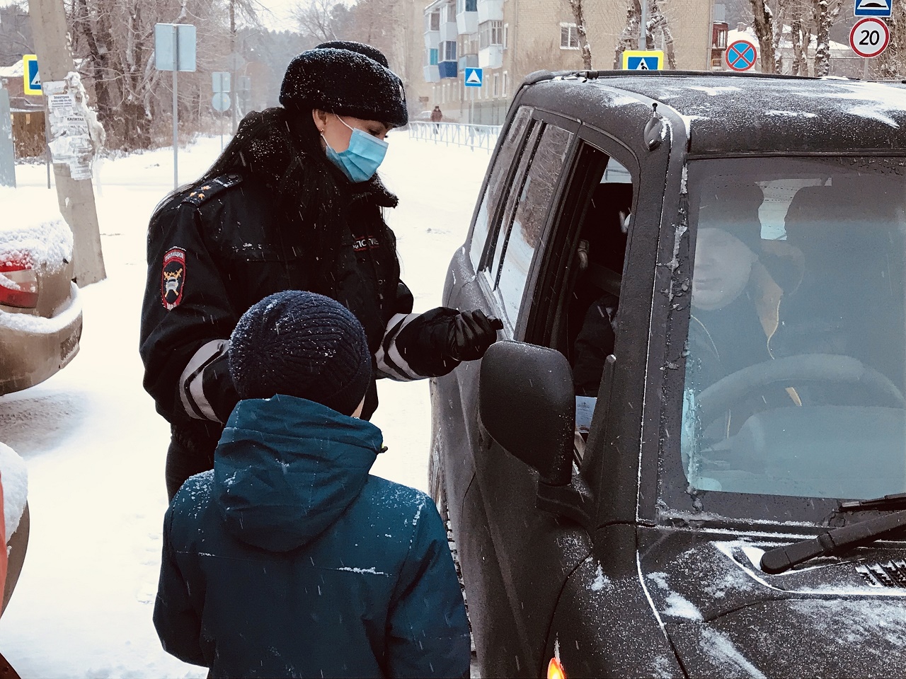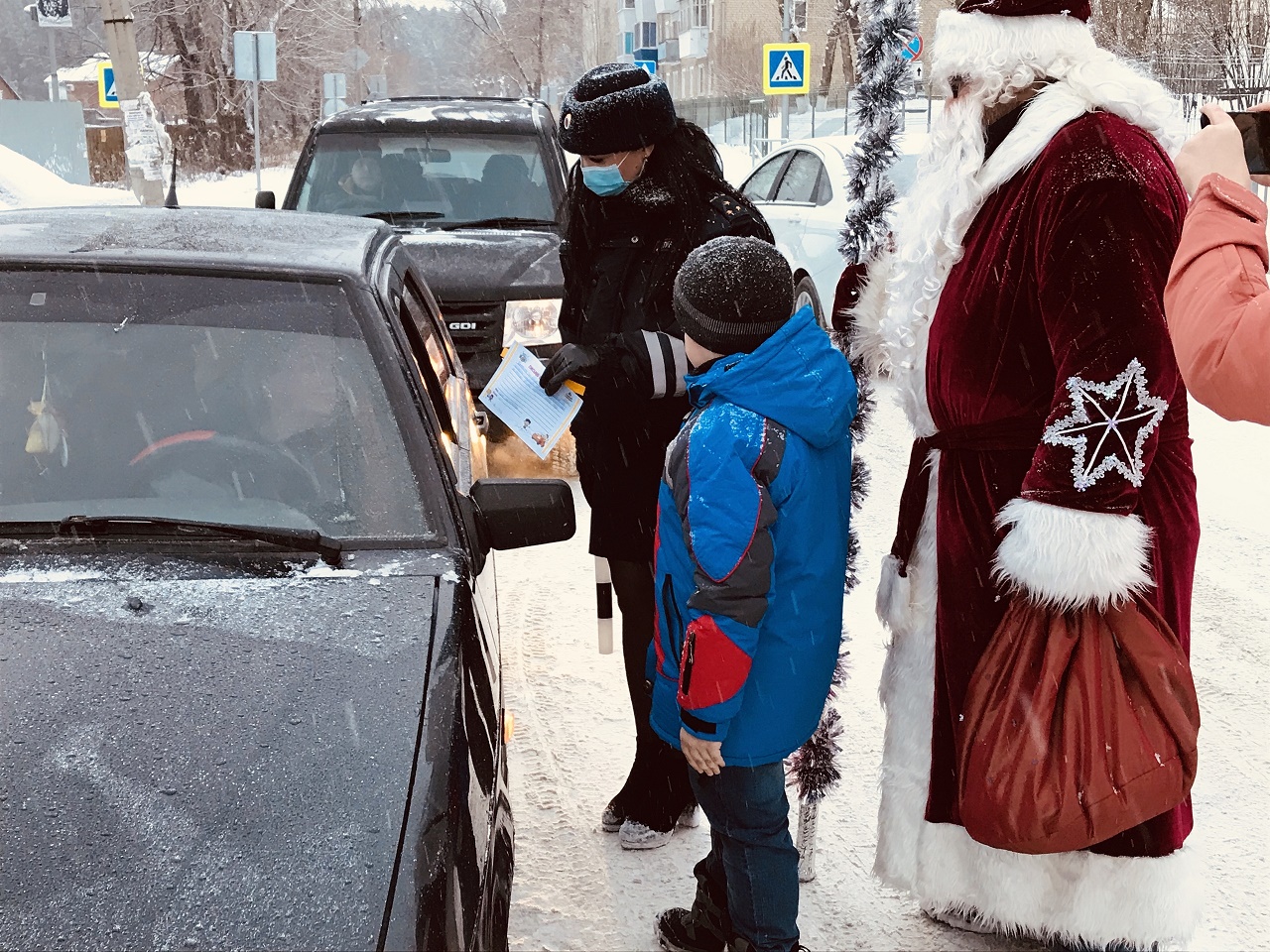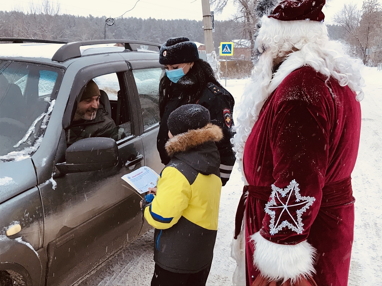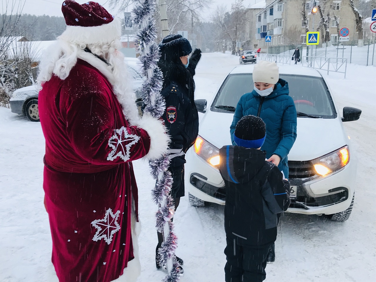 Сотрудники Сысертской Госавтоинспекции совместно с « Полицейским Дедом Морозом» и юными инспекторами дорожного движения школы №13 провели социальную акцию «Письмо водителю»